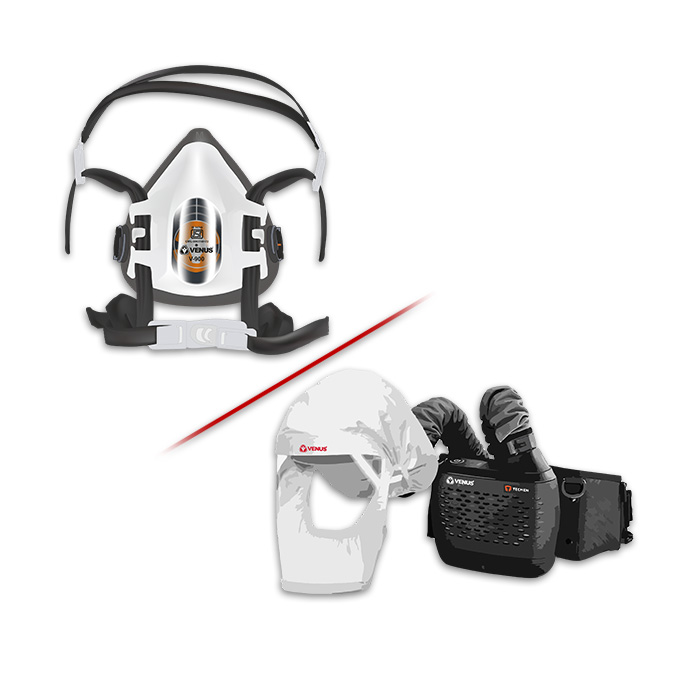 Mascarilla de media cara reutilizable - HFM con filtro reemplazable y VENUS PAPR